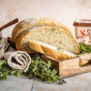 Ziemniaczany chlebek z masłem orzechowym i szałwią